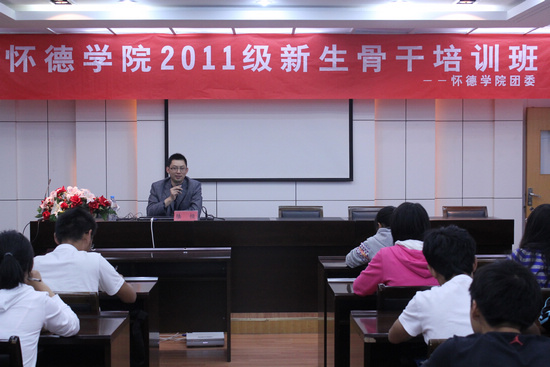 怀德学院四系副主任业绪华为新生骨干作题为“新生骨干如何成长为一名优秀的学生党员”的第二讲。结合入党条件、组织条件、学习成绩、业务能力、参加社会活动情况等对现场的11级入党积极分子进行了深入详实的讲解,并提出成为一名优秀共产党员的总体要求。