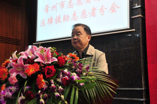 在常州大学举行的“常州市法律援助志愿者协会成立仪式暨常州大学法律援助中心揭牌仪式”上,许同禄副厅长介绍了《江苏省法律援助条例》颁布十年来全省法律援助工作情况以及本次法律援助环省行活动的主要内容。孙国建书记在讲话中充分肯定了这次活动在推动我市法律援助事业发展、发挥法律援助志愿者服务作用、倡导社会力量积极参与法律援助等方面的重要作用。孙国建书记指出,法律援助制度是维护困难群众合法权益、促进社会公平正义的一项重要法律制度,做好法律援助工作是各级政府的一项重要职责,我市的法律援助工作在市委、市政府的高度重视和支持下取得了显著成绩,但仍需要全社会的共同关心和参与。活动要紧紧围绕“真情与正义”、“法律援助志愿者在行动”两大主题,把握正确导向、坚持面向群众、注重宣传实效的要求,遵循新闻宣传规律,深入开展群众性宣传教育活动,大力弘扬现代公益理念和社会主义法治理念,广泛宣传各级党委政府加强法律援助工作的政策、社会各界的参与支持和法律援助工作的成效,客观反映困难群体的呼声,努力满足他们对法律援助的需求,有效维护群众合法权益,推动全市法律援助事业又好又快地发展。王卫星副校长代表常州大学党委、行政和全校两万名师生员工向参加活动的各位领导表示了热烈欢迎和良好祝愿,并介绍了常州大学开展法律援助工作的有关情况,对我校参与常州法律援助工作的老师和同学提出了殷切的期望。