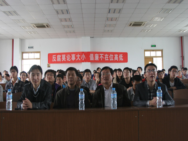 主持人就本次宣传活动做了简要介绍,并联系社会实际突出了广大党员学习反腐倡廉的重要性。与会老师和同学们一起观看了纪录片《一心为民好书记——郑培民》。短片为我们介绍了郑培民短暂又光荣的一生。在场人员认真观看,积极学习郑培民的先进事迹,体会他“做官先做人,做事先为民”的高尚作风,学习他勤俭朴素、清正廉洁,全心全意为人民服务的优秀品质。