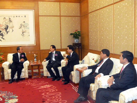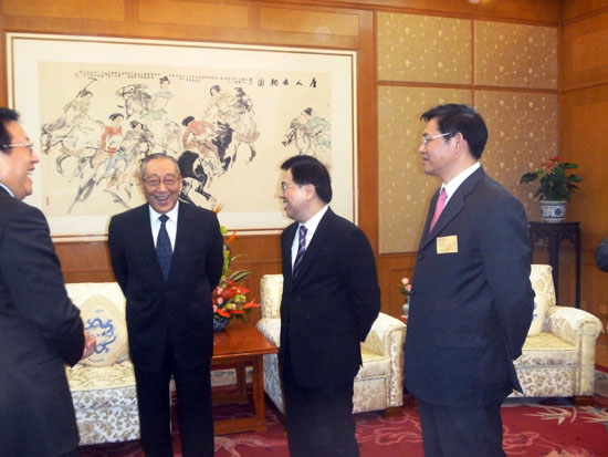 王光亚主任(左一)、郝平副部长(左二)与香港浸会大学、常州大学领导交流