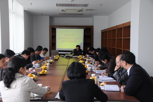 会上丁恒龙馆长代表图书馆汇报了图书馆2011年的工作。图书馆资源部孙荣林主任、期刊信息部姜巍主任分别就图书采购、数据库建设、外文期刊订阅等情况向各位委员作了汇报。各位委员就学校图书馆工作提出了很多有益的意见和建议。