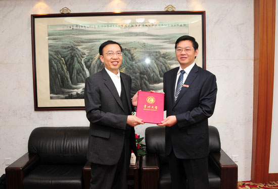 浦玉忠校长向陈哲教授颁发客座教授证书