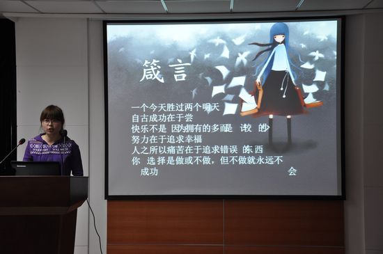 进入决赛的10个宿舍代表以幻灯片或者视频的形式进行,并伴有动听的背景音乐。各个选手分别介绍了自己的宿舍大家庭,并对宿舍的箴言进行解说,现场气氛温馨融洽。