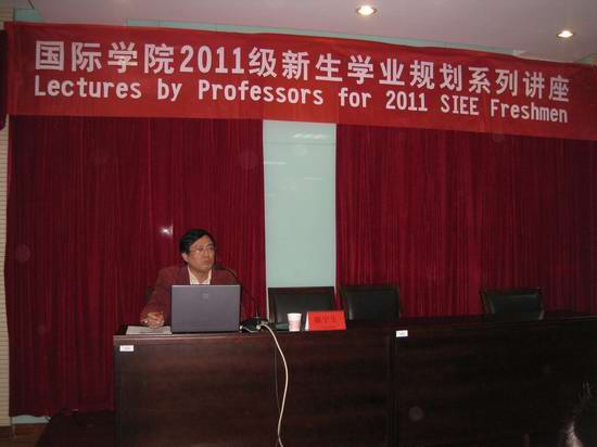 为使新生尽快掌握英语学习方法,深入贯彻国际化人才培养模式和理念。10月27日晚,国际教育交流学院邀请外国语学院姬宁生副教授为该院全体新生进行了英语学习指导讲座,讲座由国际学院党总支书记杨琳主持。