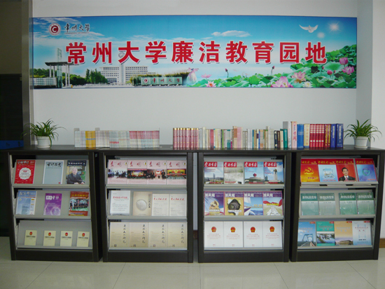 为贯彻中共十七届六中全会精神,落实教育部《关于在全国大中小学全面开展廉洁教育的意见》,推进校园廉洁文化建设,在近日开展的全省教育系统第五届“校园廉洁文化活动周”期间,校纪委、校图书馆联合在图书馆期刊阅览室创建了“常州大学廉洁教育园地”。