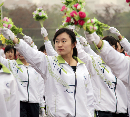 最后,浦玉忠校长宣布常州大学第七届体育健身节暨第二十九届校田径运动会开幕。随即,烟火四射、礼花响起、数柱彩烟划破长空,烘托出现场隆重、热烈、欢快的气氛。(编辑 郁涛)