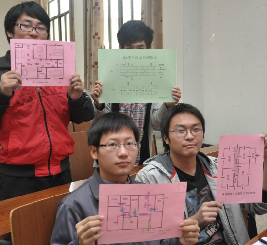 另悉,环境与安全工程学院还与学校后勤共建,在学生宿舍醒目位置张贴了《宿舍紧急疏散图》,以提高学生的安全意识,培养自救与他救能力。