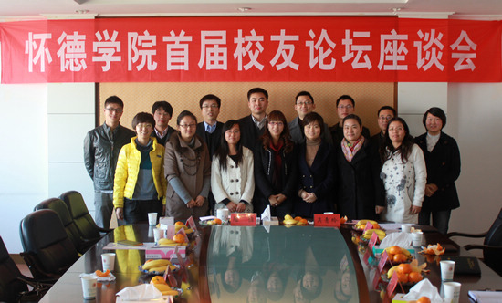 陆恒副书记代表怀德学院党委和行政对校友们能在百忙之中抽出时间回校参加此次校友论坛表示热烈的欢迎和衷心的感谢,并向校友们介绍学校和学院近年来发展中取得的成绩和未来发展规划,对校友们在各自工作岗位取得的优异成绩表示衷心的祝贺并希望他们今后常回母校看看;校友们各自谈了工作体会和感受,并对今后母校的发展、学生管理、校园文化活动等方面提出宝贵意见,特别感谢学校和学院对他们教育和培养,座谈会在热烈掌声结束,校友们将在各个教室为学弟学妹们带来精彩的讲座。