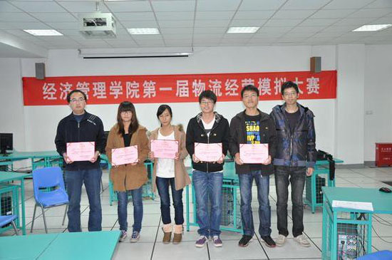 11月27日上午,经济管理学院成功举办第一届物流经营模拟大赛。江涛涛副院长、潘伟强老师和祝勇老师对参赛同学进行了专业指导。参赛选手以小组为单位,经过一整天的激烈角逐,最终由郑垚、殷欢欢等5位同学组成的小组获得一等奖,由董佳麟、杨浩等4位同学组成的小组和由徐飞、吉玲等4位同学组成的小组获得二等奖,其余2个小组获得三等奖。