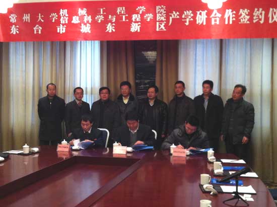 仪式上,徐越主任、裴峻峰院长、柳铭书记共同签署了“东台市城东新区—常州大学机械工程学院、信息科学与工程学院全面科技合作协议”。合作活动期间,我校教师还走访了上海电气等企业,并参观了东台市城市规划馆。