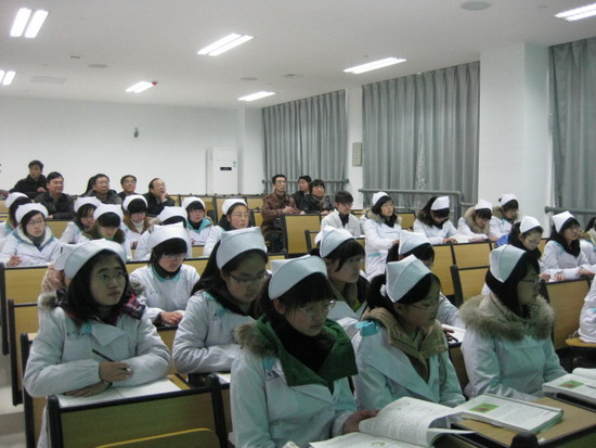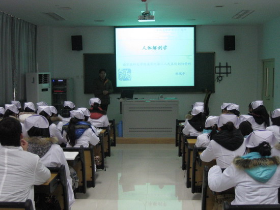 2月23日下午,一堂生动的《人体解剖学》课程在常州市第二人民医院阳湖院区多媒体教室进行,听课对象是我校首届护理班的学生,这是系列专业课及临床课的序曲,得到了常州市二院领导的高度重视,二院院长赵建中、副院长王勇、副院长薛鹏等亲临听课,授课教师详细讲解,同学们认真听课,积极互动,教学气氛紧张而活跃。