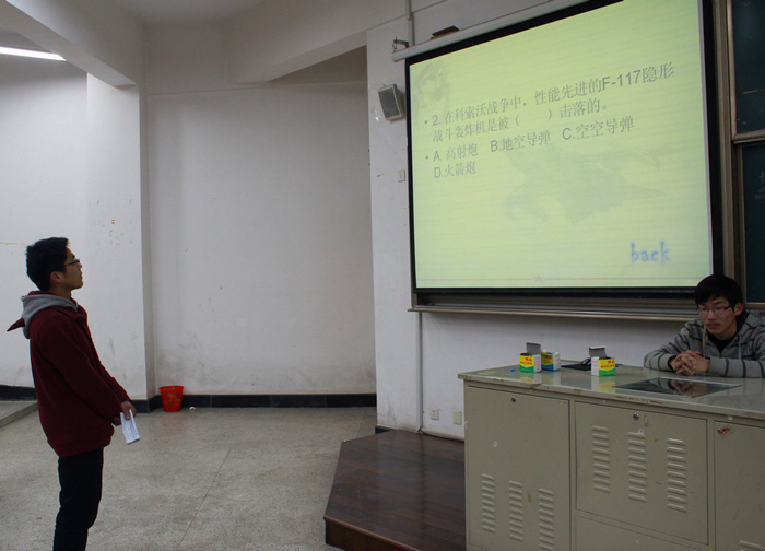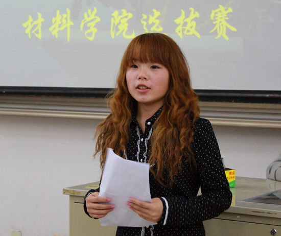 此次竞赛分为演讲和知识问答两个部分,裁判团由院学生会成员王望、朱彦博、徐香姿等五人组成。比赛初期,参赛选手围绕“热爱人民军队,共筑钢铁长城”的主题,自拟标题,进行了限时6分钟的激情演讲。演讲过程中参赛选手或慷慨激昂、或深情款款地表达了自己对军队建设的支持与歌颂,一句句经典语句,一段段感人故事让在场观众收益良多,选手们声情并茂的演讲赢得了同学们的阵阵掌声。在后期的国防知识问答中,选手们更是各显其能,争先恐后地抢答,将活动现场推向了高潮。经过激烈的演讲与知识问答角逐之后,材料112班的崔健及111班的高瑜摘得一等奖的桂冠。