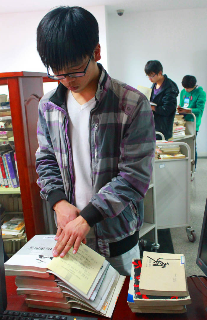 按照约定时间,志愿者们按时来到了常州图书馆,并在工作人员的带领下进入了图书管。志愿者们在听取了管理员的简单讲解后便按部就班的忙活起来,首先要将书架上一排排的书籍进行分类。一部分志愿者认真的按照要求将一本本即将捐献给贫困山区的书刊分门别类,并进行小心擦拭。另一部分志愿者将分好类的图书一一进行登记,并统一装箱,同学们认真负责的工作态度受到了图书管理人员的一致好评。经过大家一下午的不懈努力,上千本图书顺利被整理完毕,望着一箱箱整理好的书籍,想象着山区孩子们收到书籍时的笑脸,志愿者们感到由衷的高兴,能为山区孩子进献一份自己的爱心也是此次志愿者活动的目的。