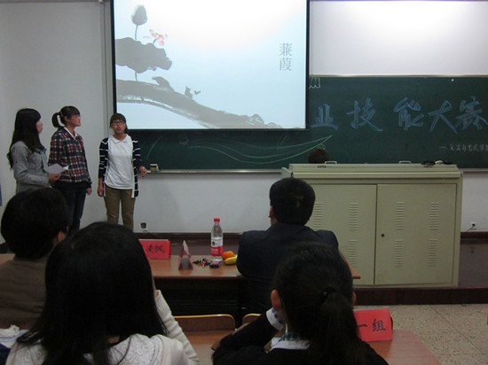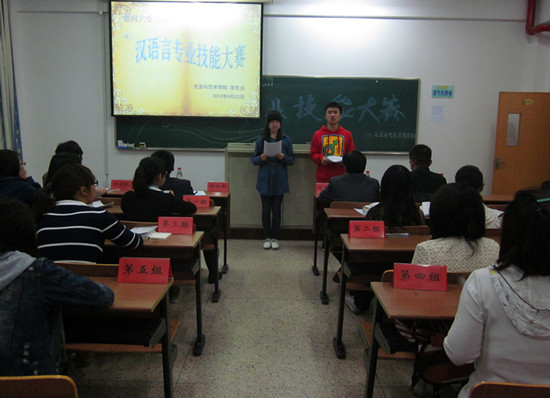 近日,文法与艺术学院在W1521举办了首届汉语言文学专业技能大赛,大赛邀请了汉语言专业的相关老师担任评委,来自汉语言2011级1班的五支代表队参加了此次比赛。