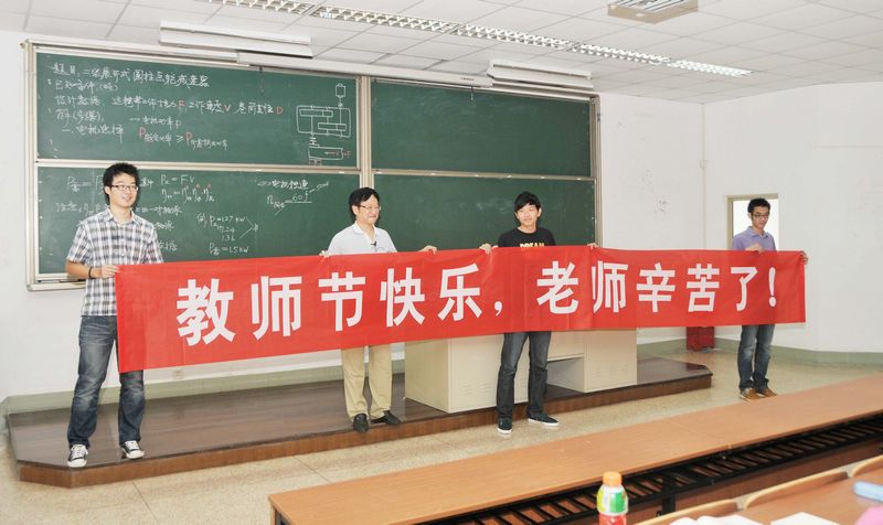 机械学院研究生也通过短信、横幅、实验室祝福等形式为导师献上节日的祝愿。