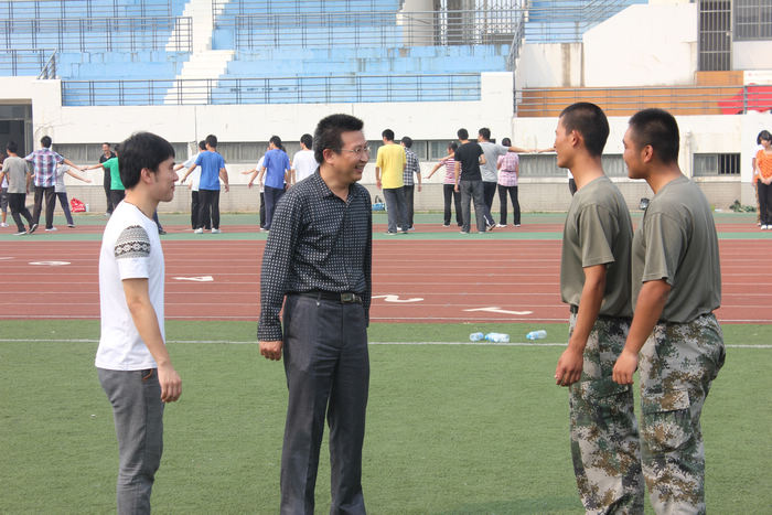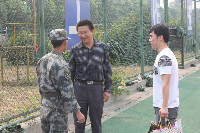 李文明副书记对教官的辛苦教导表示感谢,并仔细询问了现在学生军训的各方面情况,对于目前同学们的军训成果表示了肯定,希望教官严格要求,争创佳绩。李文明副书记了解学生现在存在的困难,鼓励学生严格要求自己,成为一名合格“军人”。