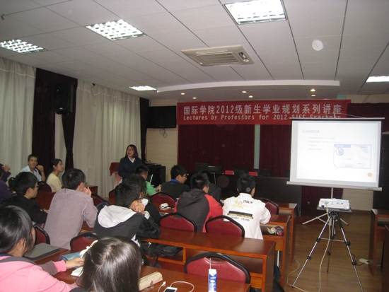 为了使学院中外合作办学项目新生对境外合作院校有更直观、更感性的认识,全面了解所有合作办学项目。国际教育交流学院于10月17日晚在院多功能厅,对中爱项目以及中加项目的所有2012级新生,进行了“境外合作院校介绍”的讲座。
