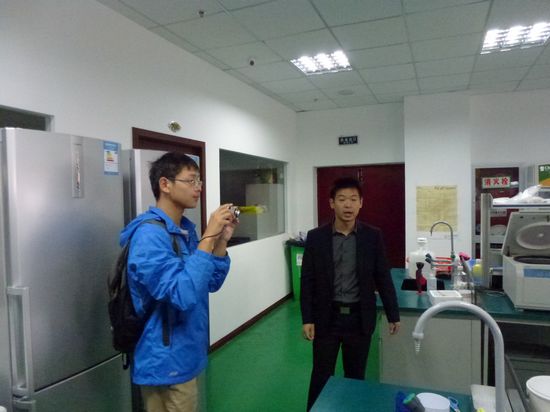 师生们在无锡傲锐东源生物科技有限公司人事经理张阳先生带领下,参观依山旁水、具有欧式风格的无锡马山生命科学园建筑群。师生们还饶有兴趣地来到张阳先生所在的公司,一边参观公司各个部门、实验室、车间,一边听张经理介绍企业的科研、生产情况以及对毕业生的招聘要求。无锡药明康德新药开发公司技术助理、常大制药学院校友刘雪全程陪同。