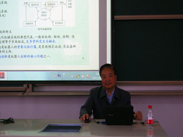 杨廷力教授向同学们介绍了机器人机构学的起源与发展,从现代机械系统与机构学、机构组成原理、机构学基本方程、机构拓扑机构学、机构运动学、机构动力学等六个方面为同学们构建了机构学理论体系的基本框架。随后,杨教授对讲座内容进行了总结,并鼓励同学们积极探索,踊跃加入到科学实践的活动中去。讲座在同学们热烈的掌声中落下帷幕。