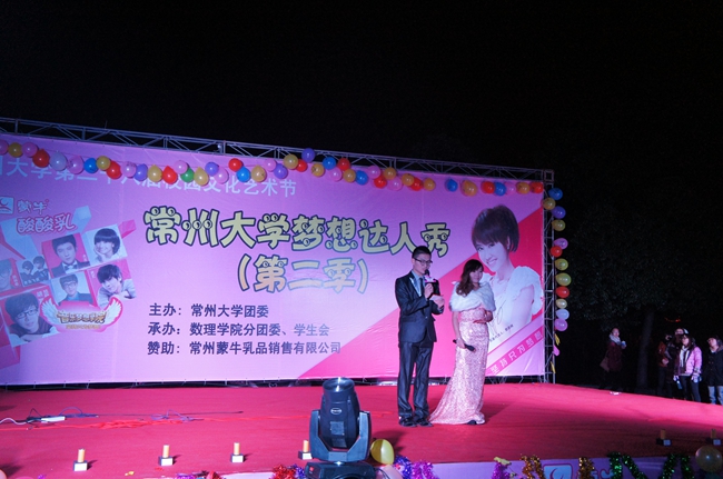 11月24日晚,由校团委主办、数理学院团委承办的第二十八届校园文化艺术节之“常州大学梦想达人秀”第二季在水月广场举行。各学院团委书记、学生会骨干和将近两百观众到场观看了本次活动,本次活动由校团委葛涛老师、刘赫老师,怀德学院李昊远老师担任评委。