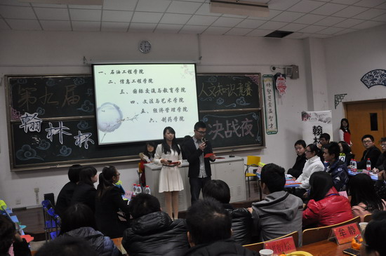 为培养学生人文知识兴趣爱好,提高文化素养,增强文化自觉意识与创新精神,为学生成长、成才奠定更为宽厚的知识基础,近日,由校团委主办、经济管理学院承办的第九届“翰林杯”人文知识竞赛决赛在W6阶顺利举行,校团委书记牟静、各学院团委书记及经管院辅导员老师参加本次活动。经初赛选拔,最终六支代表队晋级决赛。