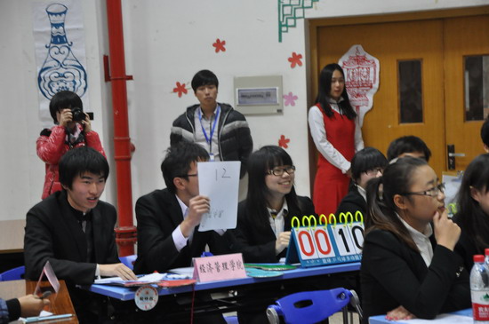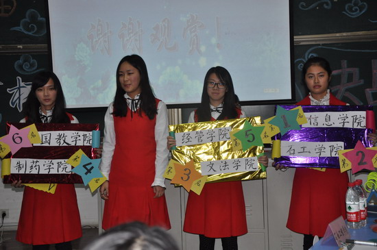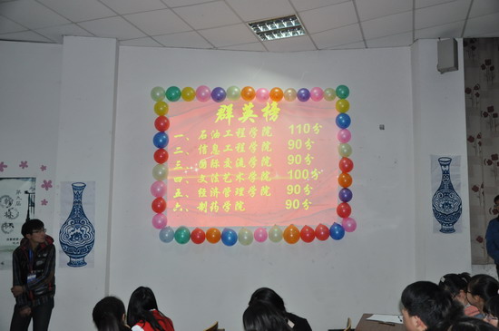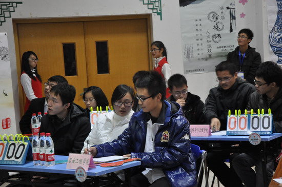 决战现场布置别出心裁,精美书画作品、传统剪纸画幅、风采展示照片墙尽显人文风貌;播报战况的群英榜、保证公平的仲裁区、热情洋溢的助威区,齐助赛场精彩。决赛共分为“知识问答”、“急速抢答”、“风险演绎”三个竞赛环节,比赛在个性诙谐的团队展示视频中拉开帷幕。知识问答题目涉及文学、历史、生活、地理、法律等领域,充分考察选手基础知识功底。抢答环节比拼的是人文素养的积淀,更是现场应变的能力,现场观众的心跳随选手们的抢答器律动。互动环节中,随机抽取现场观众进行答题,舒缓了现场激烈角逐的氛围。最后的风险题环节里各队斗智斗勇,各支队伍凭借团队能力争取分数,巧妙化解风险、转移危机,为大家奉献了一场饕餮文化盛宴。最终,信息学院代表队杀出重围摘得桂冠,其他代表队分获二、三名。