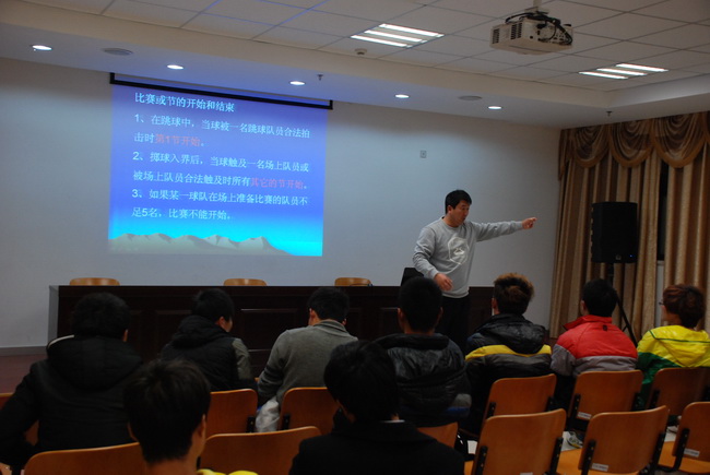 仪式上,李荣书记指出,篮球裁判是一项严谨、严肃的工作,是一项可以给大家带来帮助的事业。他要求同学们从最基本做起,用最诚恳的态度对待篮球裁判的学习,认认真真做人,踏踏实实做事。王纪信老师为学员正式授课,他从篮球比赛的场地、器材、球队领导的职责、比赛通则、比赛管理等方面向学员阐述了国际篮联的前沿信息和动态。体育学院还为各位学员免费赠阅《篮球竞赛规则》和《篮球裁判法》。