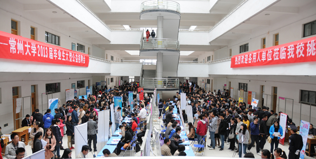 4月20日上午,我校与常州市人才服务中心联合举办的 “走进校园”——常州大学2013届毕业生专场招聘会在武进校区教学辅楼顺利举行。来自省内及上海等地共计近140家用人单位参会,提供有效就业需求岗位2000多个。