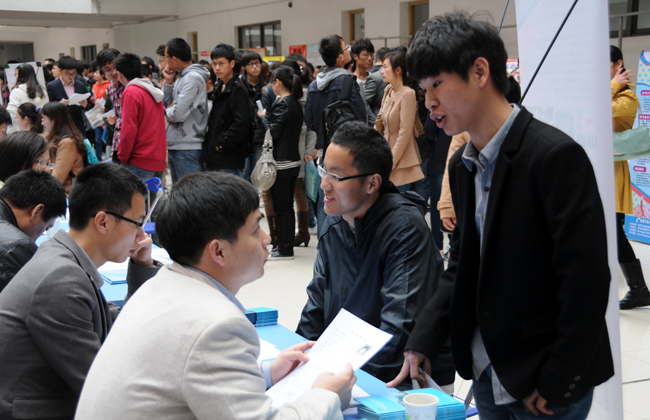 学生与招聘单位交流