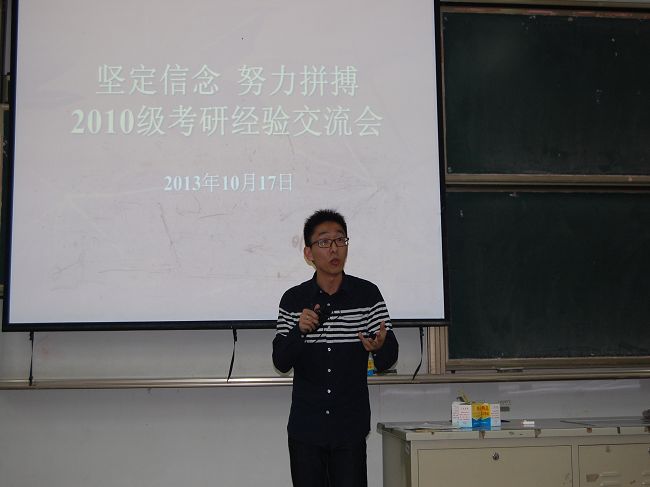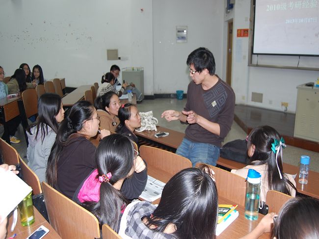 10月17日晚上,外国语学院在W16阶成功举办了优秀毕业生考研经验交流会。此次交流会邀请了四位正在读研的优秀毕业生为仍然奋斗在考研之路的2010级同学们答疑解惑。