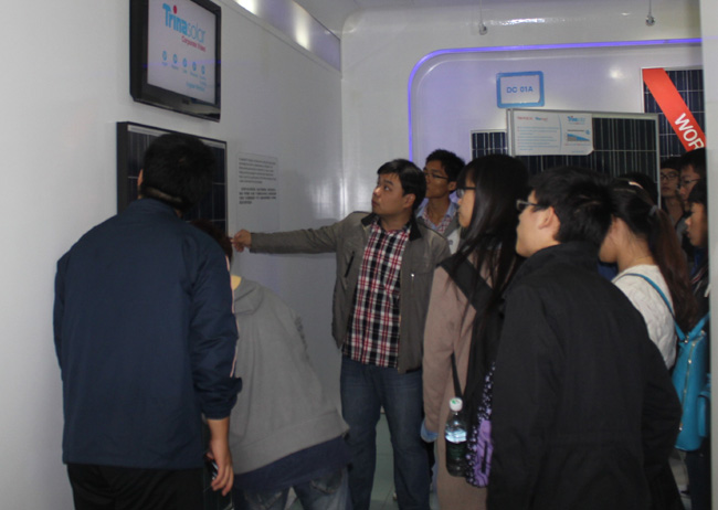 同学们在参观过程中提出了很多问题,包括新能源的发展前景、目前多晶硅太阳能电池的发展方向、存在的瓶颈及研发人员的解决方案等,叶博士都一一进行了解答。本次活动不仅让大家了解了光伏企业的生产线流程以及太阳能电池的制备工艺,同时也激发了同学们学习专业课、了解学科前沿的兴趣。
