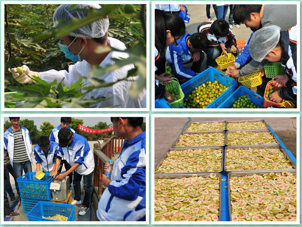 揭牌仪式后,怡泰公司的工作人员向同学们介绍了无花果的种植、功能及采摘的相关要求,带领同学们做好防护措施进入无花果种植地内采摘无花果。采摘结束后,同学们体验了清洗、剪梗、切片、晾晒、烘干制作成无花果茶等一系列制作流程。通过此次活动,同学们进一步理解了“有机可追溯”、“绿色生态农业”的含义。