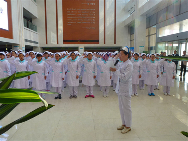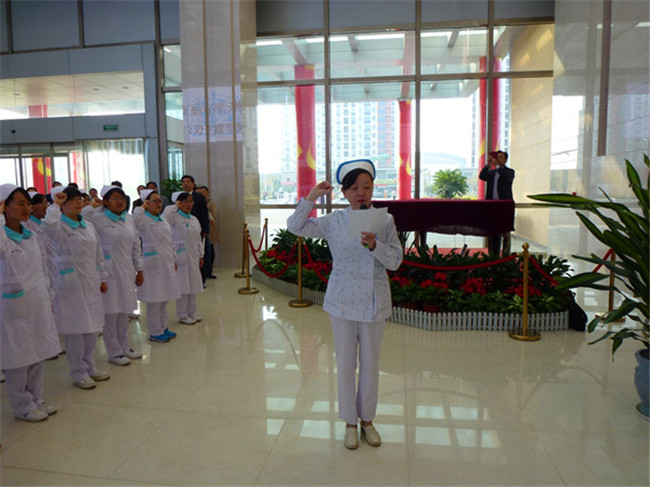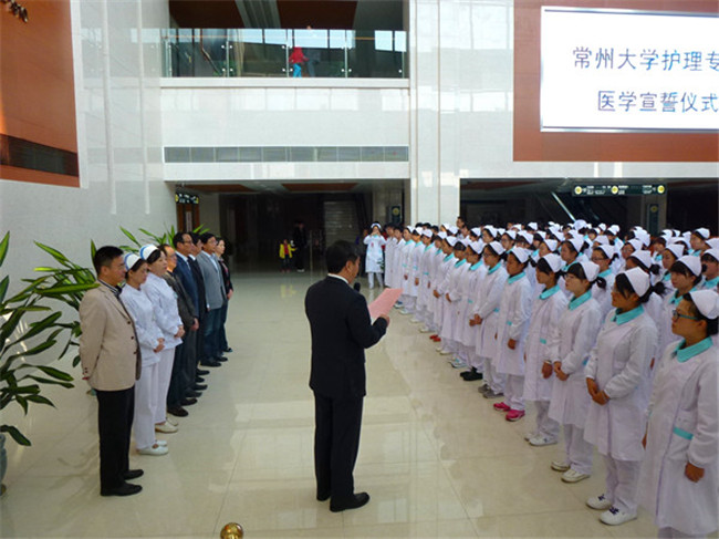 常州二院赵建中院长、周志武副院长、工会主席李春旻,护理部主任戴小明、副主任孙志琴、徐宇红,制药学院张跃院长,张继延副书记、宋国强副院长出席了本次活动,学院护理系全体教师及学工办老师到会。宣誓仪式由宋国强副院长主持,二院护理部主任戴小明领誓,身着护士服的12级和13级的全体护理专业的学生庄严宣誓:救死扶伤,不辞艰辛,执著追求,为社会医药卫生事业的发展和人类身心健康奋斗终生!
