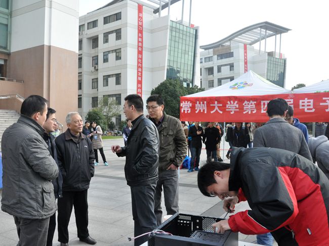 11月27日下午,由教务处、校团委主办,信息科学与工程学院承办的第四届大学生电子信息技能大赛之计算机装机大赛在图书馆前广场成功举办。校关工委老师王正洪,教务处副处长徐明华、校团委书记牟静、信息学院党委书记柳铭、副院长孙霓刚,党委副书记储志新、院办主任许淮、常州大学电脑120指导老师何可人、常州大学电脑120创始人张景洲应邀出席并担任此次大赛的嘉宾。