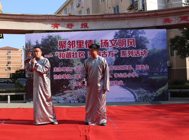 材料院的学子们带来了在前不久道德文化节上广受好评相声小品,在社区表演时叫好声也此起彼伏。其中的《车祸风波》发人深省,肇事司机的逃逸,路人的冷眼旁观,医生的只认钱与好心人反被诬赖……这一切的一切都来自生活,与在场的人引起了共鸣,让人笑后又会有深深的反思。