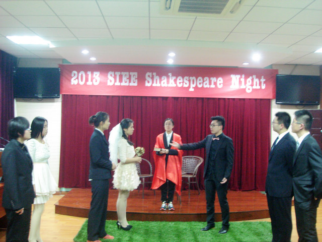 本学期国际学院外教Ma.Socorro Duenas 和Rezen Obstabulo对《英语口语》进行了大幅度的课程改革,在外教精心设计和辅导下,13级新生分成小组,演绎莎士比亚戏剧,以学业展示的方式进行考核,表现最佳的两组作品在“莎士比亚戏剧之夜”进行汇报演出。这是继《英语演讲和表达》改革考核方式之后,国际学院在课程改革上又一次新的探索。