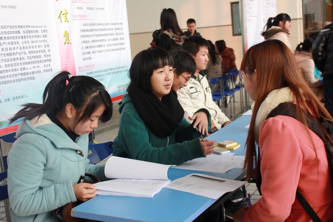 活动现场,共有24支参加“挑战杯”创业大赛的创业项目团队和落户“常青藤”创业社区的创业团队前来“招聘”相关专业的人才,各个创业项目的负责同学坐镇招聘现场,与前来应聘的学生面对面地交流,宣传推介自己的项目,现场招贤纳才,寻找创业伙伴,实现“抱团创业”。来自我校化工、材料、会计、营销、法学、艺术等专业的200多名同学前来参加了应聘,他们认真阅读各项目团队的招聘启示,寻找自己心仪的项目,经过双向挑选,做到知识互补、合作共赢,共同组建一支具有完善专业知识结构和丰富创业实践能力的队伍,共同开启团队的创业之旅。