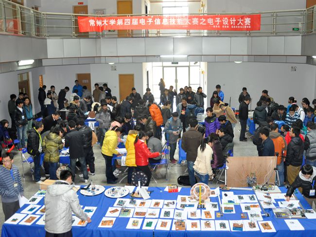 12月19日下午,由校教务处、校团委主办,信息科学与工程学院承办的常州大学第四届电子信息技能大赛之电子设计大赛在文约楼大厅举行。教务处副处长徐明华、校团委书记牟静、院党委书记柳铭、副院长孙霓刚、院党委副书记储志新及院办公室、院学工办老师及辅导员出席了本次比赛。此次大赛的评委由电子信息工程系的专业任课老师担任。