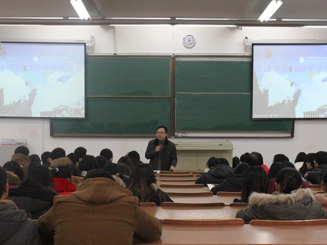 2月27日,文法学院在W9阶召开2014届毕业生大会。院党委副书记薛勇,学院辅导员老师及文法学院2014届全体毕业生参加了本次大会。