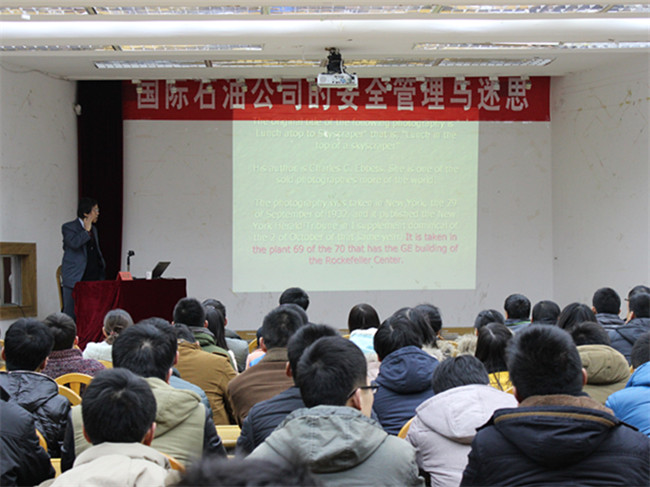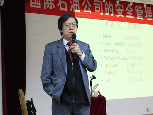 林光震从国外安全意识的变迁史出发,向现场师生展示了国外安全意识从无到有的变化。他对我国近年来在完善事故分析、提高风险判断能力方面所取得的进步进行了详细的讲述。同时他还围绕安全风险话题列举了近年来国际几大石油公司从运输过程到油库管理提出的安全管理办法,提出纪律是安全的基础,揭示防患的重要性。报告最后,林光震以安全事故发生的直接原因、间接原因两个层面引发了同学们关于安全管理实施办法的深思。