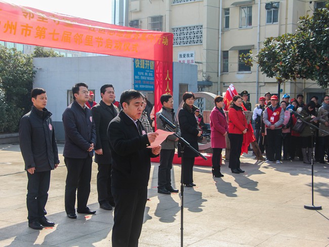 活动伊始,常州市宣传部副部长、常州市文明办副主任和常州市团委副书记分别就“学习雷锋精神”发表讲话,他们号召大家将雷锋精神融入到日常工作、生活中。志愿者代表王丹宣读了志愿者宣言,希望大家学习雷锋精神,能够积极投入到志愿活动中来。常州市文明办主任宣布第七届邻里节仪式的正式启动,本次活动在掌声中落下帷幕。