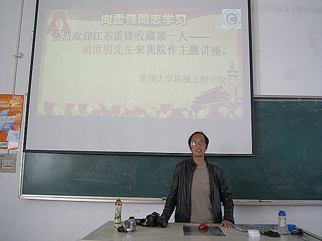 讲座上,胡世明老师向大家展示了四十多年来收集的雷锋藏品。同学们看着来之不易的藏品,更真实地感受到雷锋的精神。同时,胡老师也向大家分享了自己追寻雷锋精神的经历,以及做人处事的道理。他鼓励同学们在大学期间要积极发掘人生价值,多做有意义的事情,向雷锋一样,无论做人还是做事都要有明确的原则。胡世明老师身上所展现的吃苦耐劳、勤俭节约、执着奉献的精神也深深地感染着在座的同学。