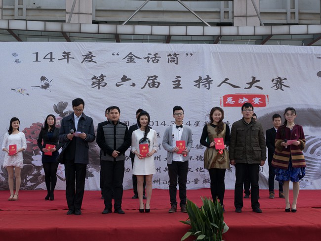 经过初赛、复赛角逐,共有十名选手晋级决赛。决赛分为“个性宣言”,“搭档主持”,“问题阐述”三个环节。个性宣言环节通过选手不同形式的自我介绍来展现自己的独特与多才多艺;搭档组合环节选手们配合默契,表现自如,引起现场观众笑声掌声不断。最后问题阐述环节考察应变能力,选手们个个沉稳大气见解独特,台上台下的互动环节使现场气氛达到高潮。经过紧张激烈的角逐,来自电气132的李懋获得第一名、国贸134的王钰珂获得第二名,国贸132的梁娅茜获得第三名,其他同学也相应获得了奖项。