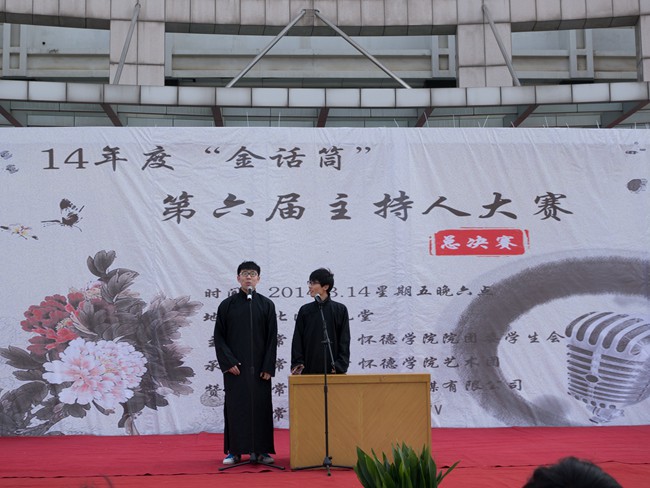 3月14日中午,由院团委主办,院艺术团承办的怀德学院第六届“金话筒”主持人风采大赛开展。院团委、学工办老师,院团委学生会主要骨干上百名同学共同观看了比赛。