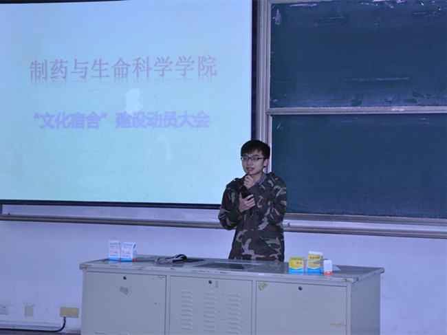 在校关工委的指导下,制药与生命科学学院于3月26日晚召开了 “文化宿舍”建设动员大会。校“关工委”常务副主任张桂华、院党委副书记张继延、学院“关工委”副主任周军红应邀到会。学院自律中心骨干成员、全院宿舍长参加会议。