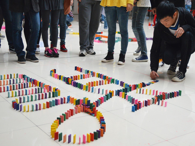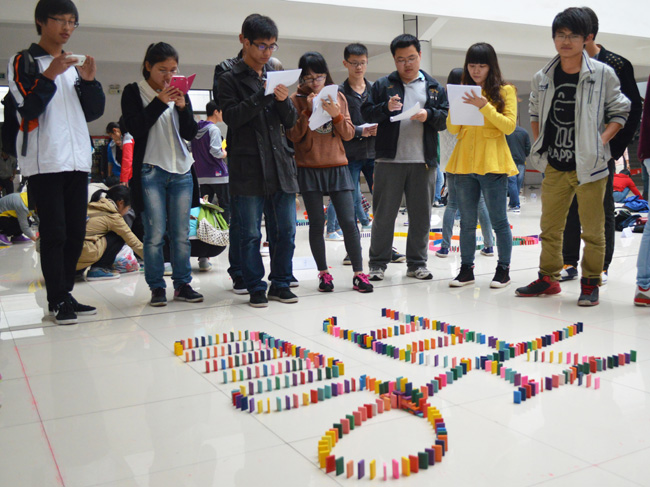 4月12日下午,由材料学院学生会举办的以“常州”为主题的多米诺骨牌活动在辅楼大厅举办,共有19个队参加,历时一个小时,最后由第13小队获得第一。