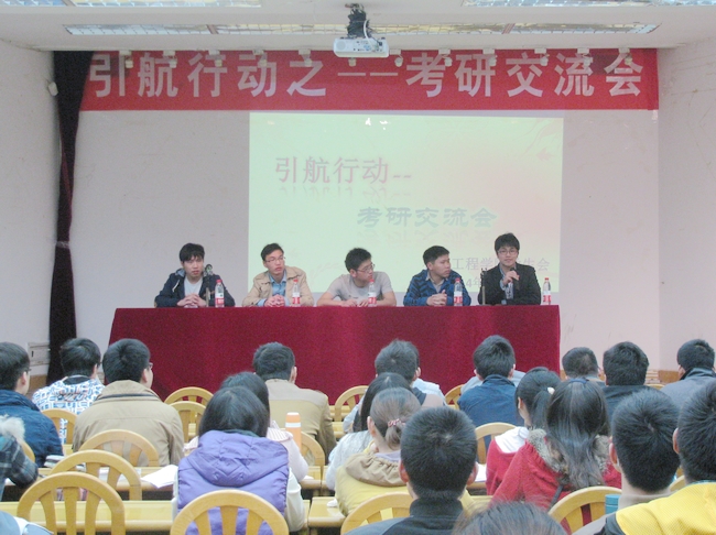 此次交流会向考研同学传递了考研的经验,使同学们有了更加明确的努力方向,调动了同学们考研的热情,坚定了他们能在考研的道路中坚持到底的信念。