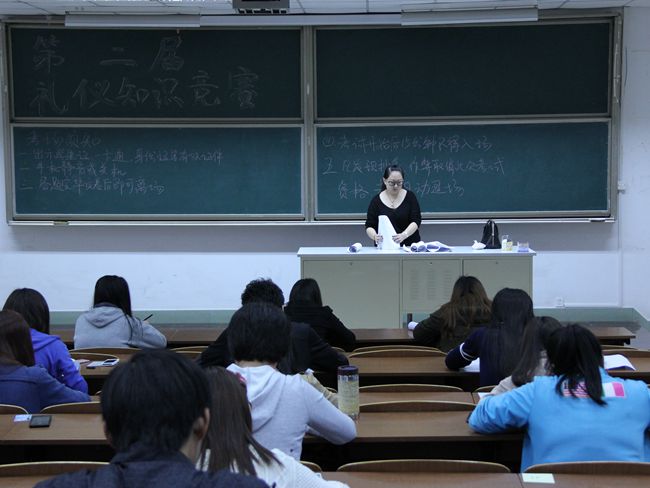 近日,由怀德学院女生部组织举办的第二届礼仪知识竞赛活动在南区2、3、5、6阶梯教室同时举行,院女生部全体成员以及200多名新生参加了此次比赛。