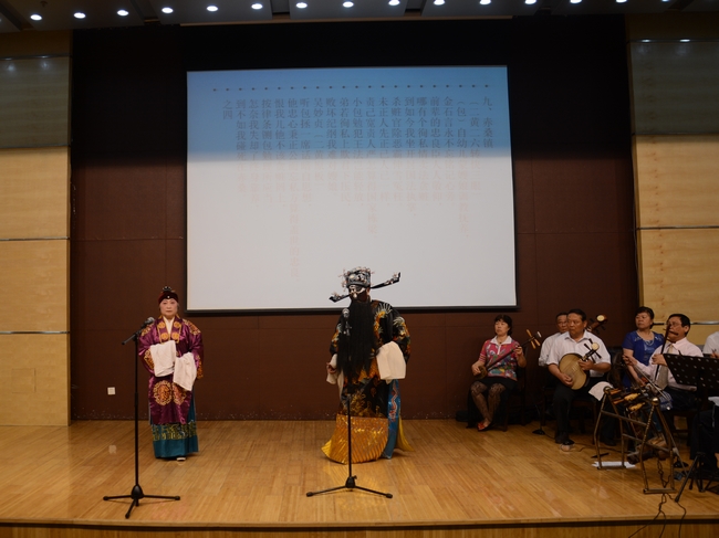 京胡演奏音乐会共分为三个部分,在“琴韵浓浓”环节,由常州市劲松京剧联谊会琴师组成的演奏团队分别以“二黄”、“反二黄”和“西皮”三种腔调演奏京剧曲牌《小开门》,精彩的演奏博得了观众的热烈的掌声;在“流派名段”环节,劲松京剧联谊会多名票友登台演唱了京剧各主要流派的著名唱段,其中劲松京剧联谊会会长张梅芳反串老生行当,为大家演唱了具有醇厚韵味和典雅风格的余派名段《沙桥饯别》;劲松京剧联谊会名誉会长周桂生为大家演唱了马派名段《苏武牧羊》,充分展示了苏武的爱国情怀,并以流畅、委婉的唱腔给人以潇洒飘逸的艺术享受;叶振亚为大家带来了名列“四大名旦”之首的梅派经典名段《霸王别姬》中的“南梆子”唱腔,他以柔润甜美的音色、落落大方的行腔、雍容华贵的气度和以假乱真的角色反串极大的震撼了在场师生;生于梨园世家的常州名票孙莉珠女士演唱了《毛泽东诗词——咏梅》,唱腔悠扬宛转,伴舞赏心悦目,传统与现代的完美结合带给观众以完美的艺术享受;在“琴音悠悠”环节,由荣获2012年中央电视台戏曲频道举办的首届全国京胡琴票大赛全国十佳金奖的劲松京剧联谊会琴师李平为大家演奏了京胡曲牌《夜深沉》,演奏时捷时缓,快如急风暴雨,缓若潺潺流水,充分彰显了琴师不凡的功力和高超的技艺,让大家充分领略了我国“国粹”的艺术魅力。