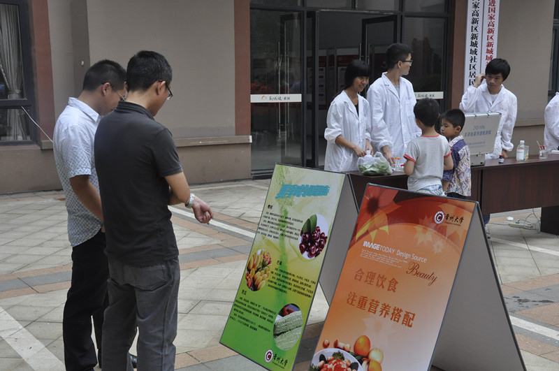 活动现场,食品质量与安全专业的同学,为居民们在现场展示了蔬菜上农药残留的检测方法及过程,食物中甲醛残留的检测方法及过程,食物中水分含量的检测及过程等,与居民形成良好互动;同时,为居民们讲述了科学消费,健康饮食的相关内容;提醒了居民们“看标签,买食品;查标识,吃东西”;帮助居民们正确的认识了食品添加剂等。